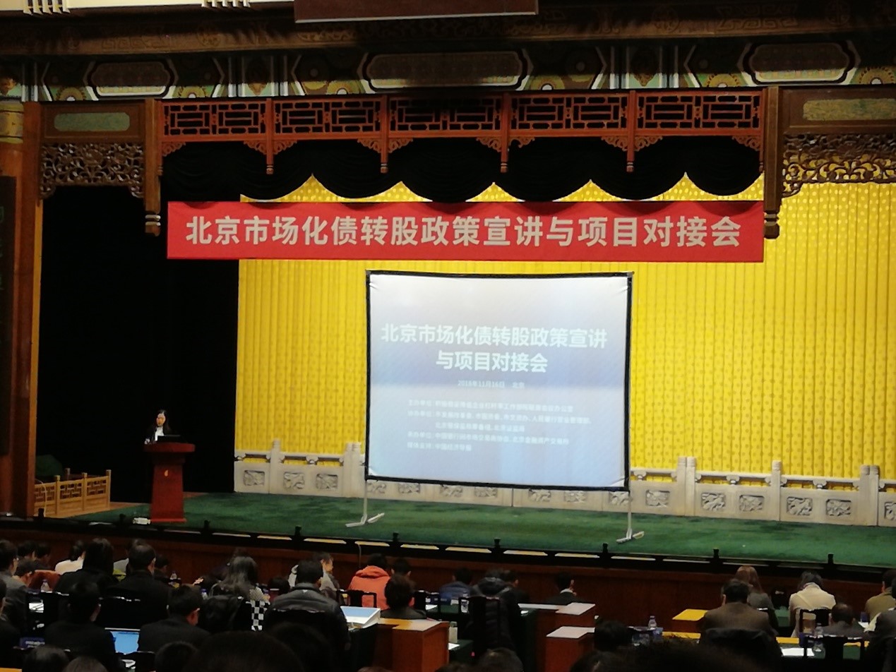 本次會(huì)議由國務(wù)院降杠桿辦公室主辦,市發(fā)改委、市國資委、市文資辦、人民銀行營業(yè)管理部、北京銀保監(jiān)局、北京證監(jiān)局協(xié)辦,中國銀行間市場(chǎng)交易商協(xié)會(huì)、金交所具體承辦,致力于推進(jìn)市、區(qū)重點(diǎn)國有企業(yè)、民營上市公司與實(shí)施機(jī)構(gòu)進(jìn)行債轉(zhuǎn)股經(jīng)驗(yàn)分享和項(xiàng)目對(duì)接,促進(jìn)市場(chǎng)化債轉(zhuǎn)股擴(kuò)量提質(zhì)。
