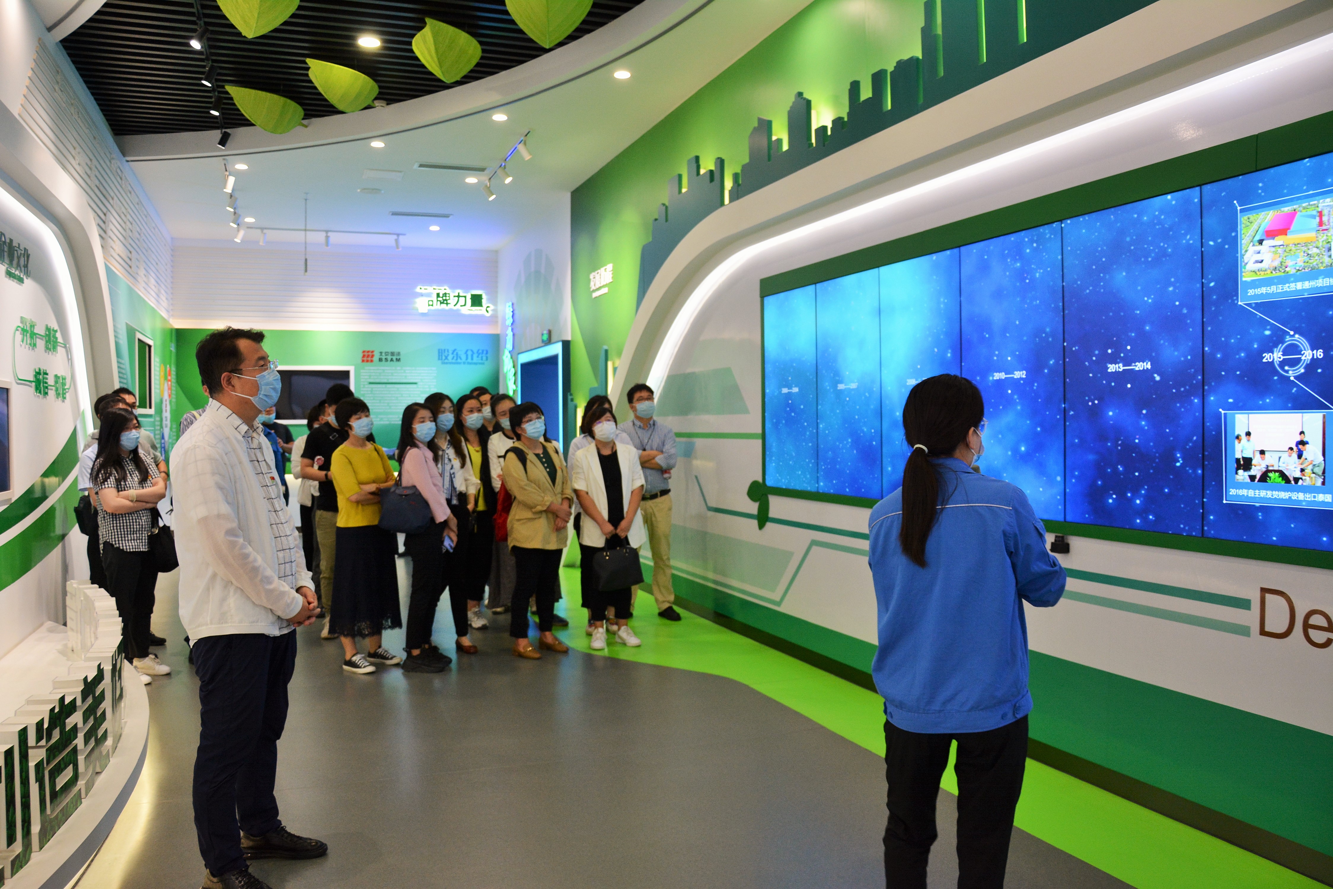 走進(jìn)綠色動(dòng)力通州產(chǎn)業(yè)園,紅、黃、藍(lán)三色的廠房建筑與以往印象中的垃圾處理廠截然不同,中國風(fēng)的庭院設(shè)計(jì)搭配著現(xiàn)代化的工業(yè)廠房,別具一格。在工作人員的帶領(lǐng)和講解下,國通公司黨員干部先后參觀了環(huán)保教育宣傳展廳和工藝流線參觀走廊,通過觀看視頻、動(dòng)漫,參與垃圾分類游戲等多種形式,深入了解學(xué)習(xí)循環(huán)經(jīng)濟(jì)理念、環(huán)保生活知識(shí);以及垃圾運(yùn)輸、發(fā)酵、轉(zhuǎn)運(yùn)、入爐、焚燒、發(fā)電的變廢為寶全過程。