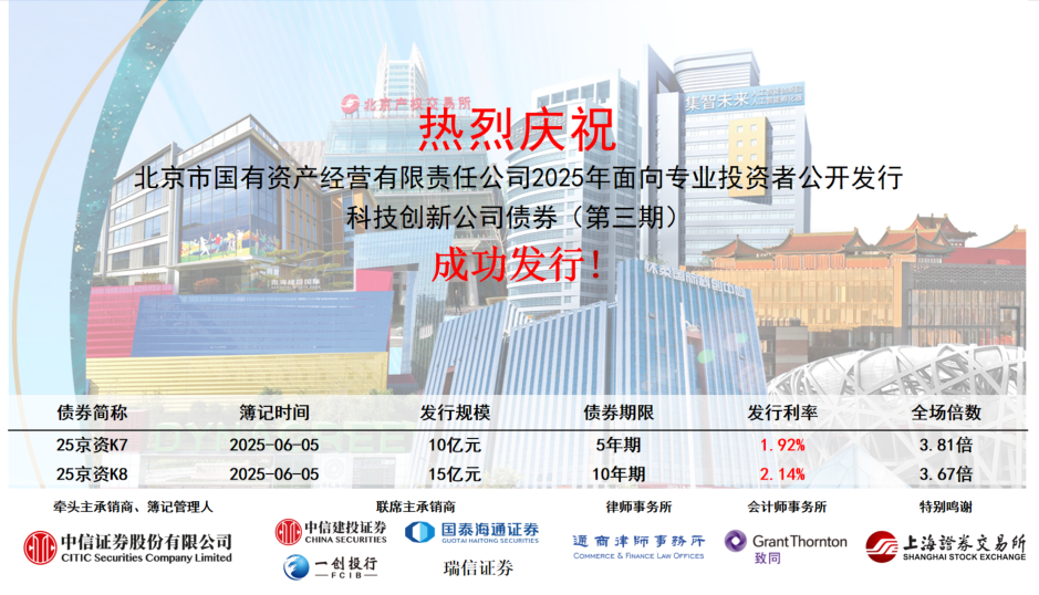 北京國資公司成功發(fā)行2025年第三期科技創(chuàng)新公司債券25億元
