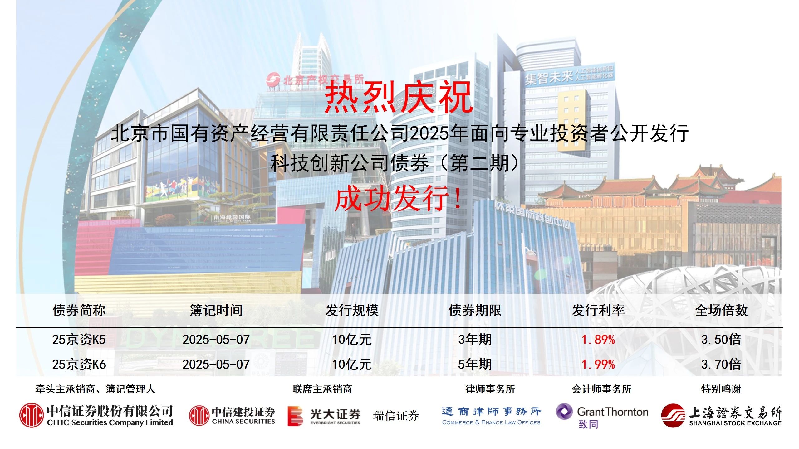 北京國資公司成功發(fā)行2025年第二期科技創(chuàng)新公司債券20億元