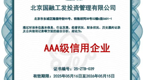 國融工發(fā)再獲“AAA級信用企業(yè)”稱號