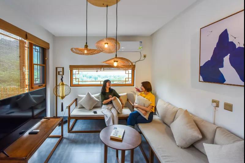 北京市門頭溝區(qū)清水鎮(zhèn)梁家莊村創(chuàng)藝鄉(xiāng)居民宿開門迎客,室外青山疊翠,室內(nèi)環(huán)境雅致,深受游客青睞。