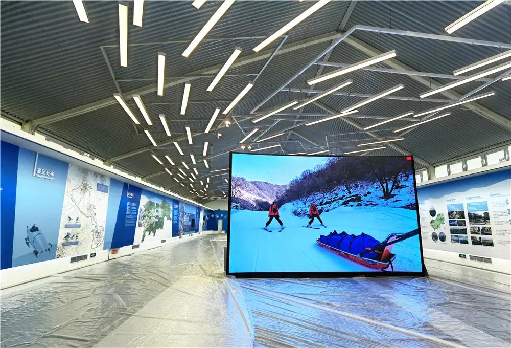水晶石承制的延慶冬奧展示中心是延慶賽區(qū)建設(shè)成就的綜合展示中心,集中展示延慶賽區(qū)建設(shè)歷程、賽后利用以及延慶區(qū)域的可持續(xù)發(fā)展。展現(xiàn)內(nèi)容密切結(jié)合賽區(qū)建設(shè)和區(qū)域發(fā)展,既是對(duì)建設(shè)歷程的回顧,也是對(duì)可持續(xù)發(fā)展的展望。