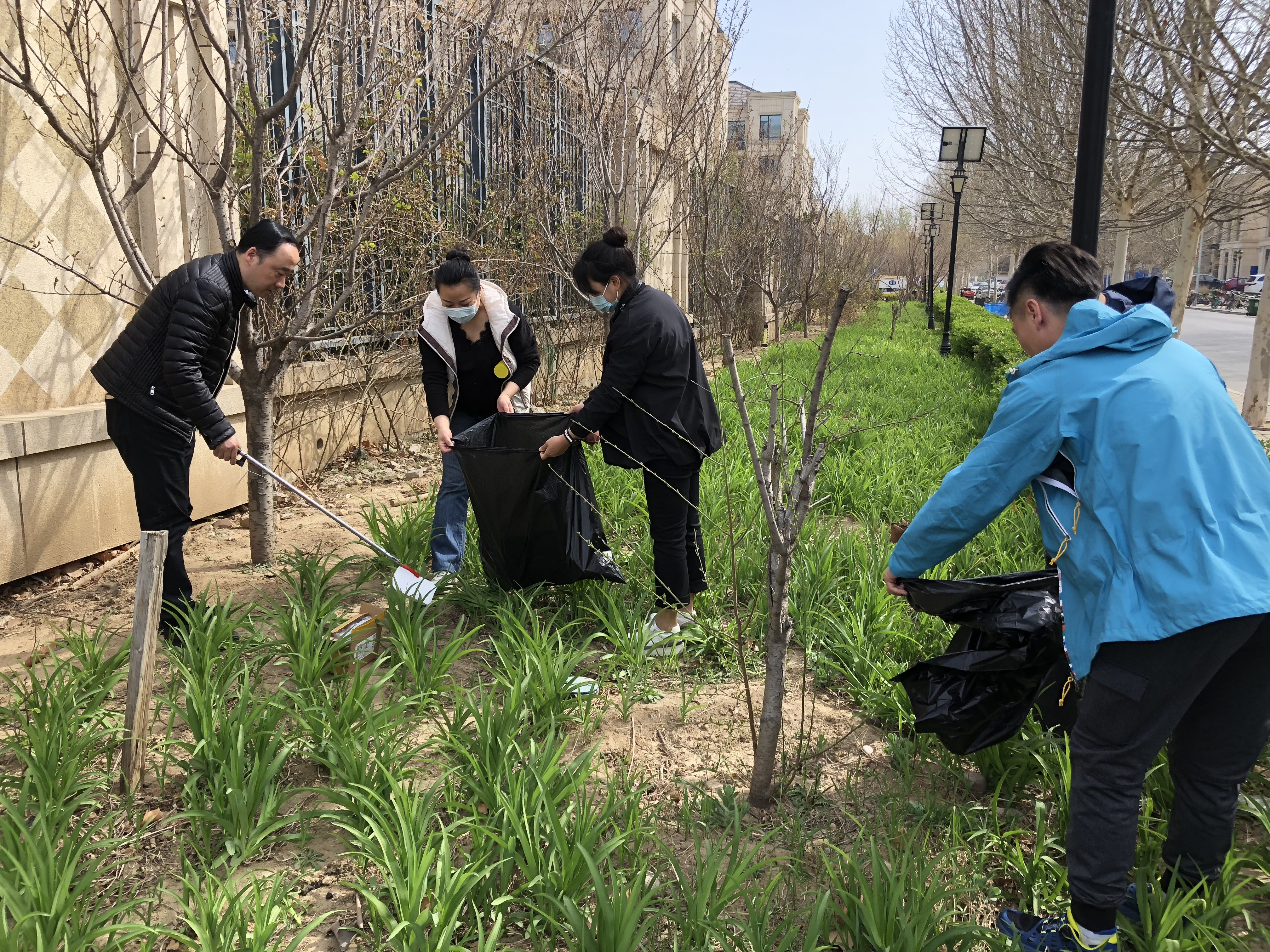 北科建集團(tuán)所屬北京城市公司翡翠山項(xiàng)目部全體黨員清理翡翠山小區(qū)及周邊道路綠化帶內(nèi)的垃圾