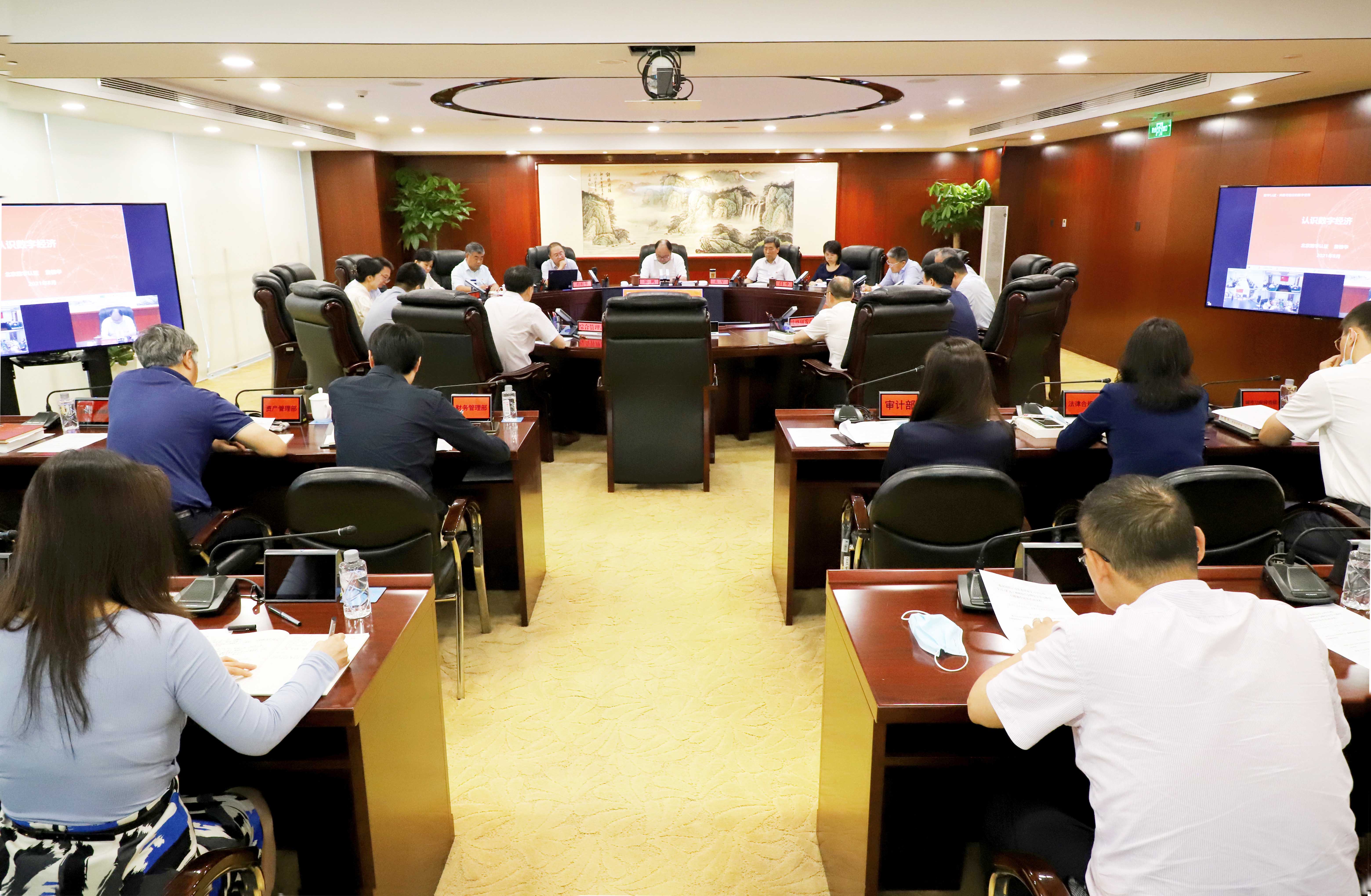 8月30日,北京國資公司黨委以理論學習中心組學習(擴大)會的形式舉辦視頻報告會,黨委書記、董事長岳鵬主持學習,旗下數(shù)字認證公司黨委書記、董事長詹榜華作了題為《認識數(shù)字經(jīng)濟》的輔導報告。公司領(lǐng)導班子成員、總部中層以及二級企業(yè)領(lǐng)導班子分別在總部及視頻分會場參加.
