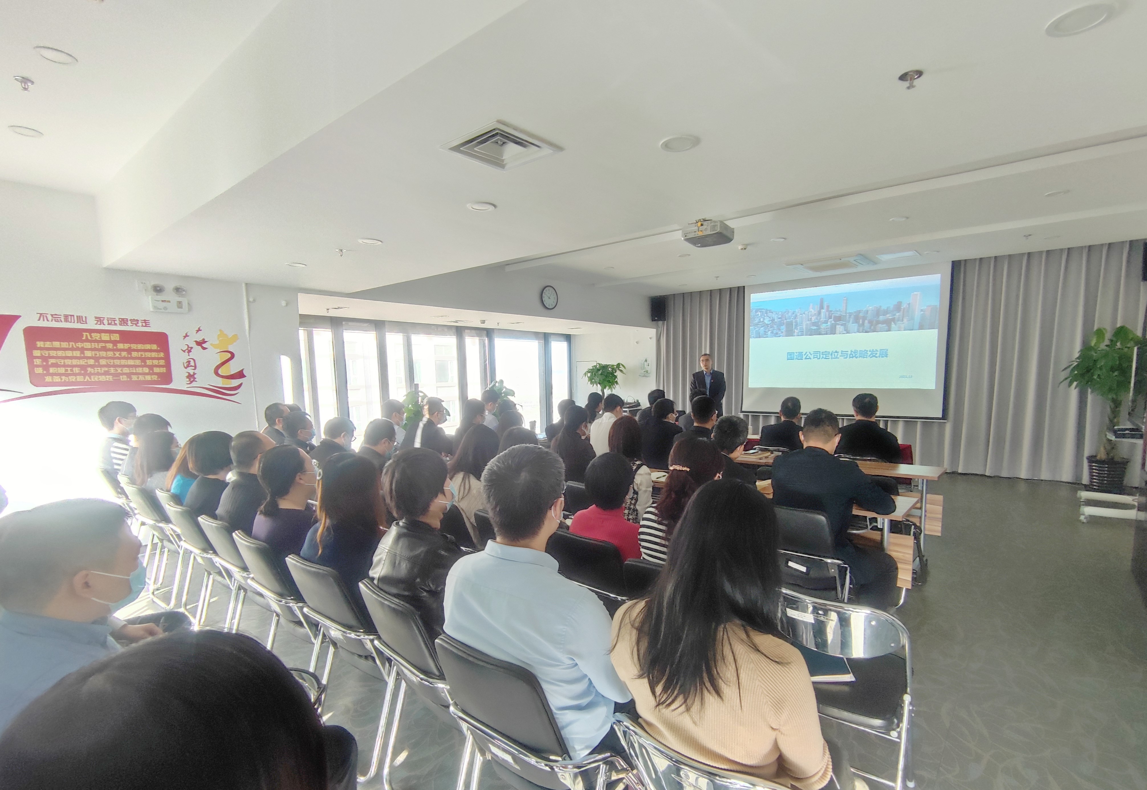 2021年12月30日,圍繞公司“十四五”戰(zhàn)略發(fā)展定位,為統(tǒng)一思想、凝心聚力,推動企業(yè)高質(zhì)量發(fā)展,國通公司成功舉辦領(lǐng)導(dǎo)講堂。公司總經(jīng)理李振華以公司定位與戰(zhàn)略發(fā)展為主題開展專題培訓(xùn),公司領(lǐng)導(dǎo)及全體員工參加講座。