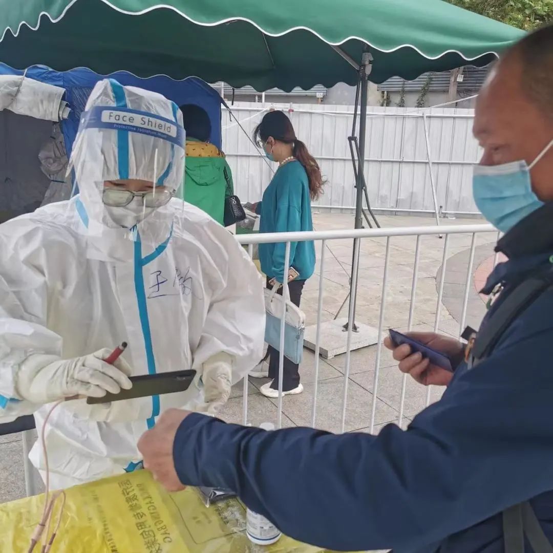 “下沉一線是難忘的經(jīng)歷,更是難得的歷練”,王丁始終以高標(biāo)準(zhǔn)嚴(yán)格要求自己。天氣熱,“武裝”確不能馬虎,為了減少上廁所的頻次,王丁經(jīng)常一悶就是6個(gè)小時(shí),一口水都不能喝。王丁說:“穿上防護(hù)服的那刻我體會(huì)到了‘大白’的不容易”。由于小馬廠社區(qū)含有養(yǎng)老服務(wù)站等原因,居民多是老人。王丁耐心地為居民解決核酸采樣中遇到的問題,細(xì)致地錄入核酸采集信息,確保核酸檢測結(jié)果能夠準(zhǔn)確的關(guān)聯(lián)居民健康寶,截至目前已協(xié)助完成核酸檢測近萬人次。