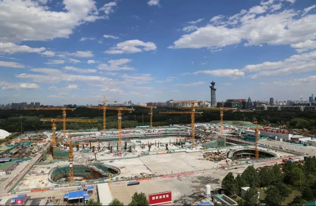 “冰絲帶”地下結(jié)構(gòu)呈橢圓弧形,積水坑多、設(shè)備管廊多、鋼結(jié)構(gòu)勁性柱和預(yù)埋件多,標(biāo)高復(fù)雜,且工期緊張。在地下結(jié)構(gòu)施工中,國家速滑館公司以對工作執(zhí)著、對冬奧項目高度負(fù)責(zé)的態(tài)度,將一絲不茍、精益求精的工匠精神融入每一個環(huán)節(jié)。從2018年1月22日開始樁基施工,僅用23天就完成了654根基礎(chǔ)樁的施工任務(wù)。自2018年5月工程全面進入基礎(chǔ)底板施工后,最多時2000余名作業(yè)人員奮戰(zhàn)在49個流水段,克服了混凝土標(biāo)號多、鋼筋翻樣難等多種挑戰(zhàn),完成了27萬立方米土方開挖、2萬噸鋼筋綁扎、9.1萬立方米混凝土澆筑、2500噸勁性鋼結(jié)構(gòu)施工,用時155天,于2018年6月26日如期完成地下結(jié)構(gòu)工程。