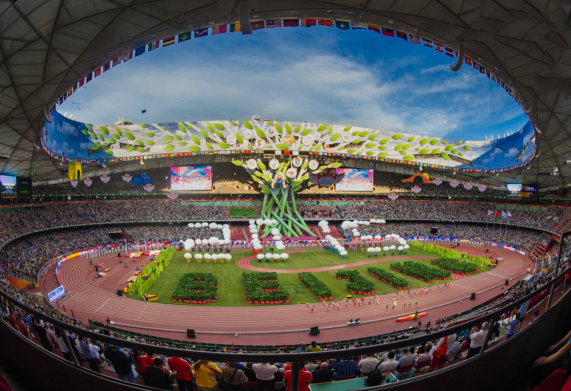 2015 年 8 月 22 日-30 日,北京國際田聯(lián)世界田徑錦標(biāo)賽在國家體育場(鳥巢)盛大舉行。本屆世錦賽共有來自207個國家和地區(qū)的運(yùn)動員、隨隊(duì)官員2500余人參加了比賽,世界各大媒體共約4300人前來采訪,其中境外記者715人,電視轉(zhuǎn)播機(jī)構(gòu)約3300余人,賽事規(guī)模和參賽人數(shù)為歷史之最。比賽期間,國家體育場(鳥巢)保持了非常強(qiáng)烈的吸引力。精彩的賽事吸引了廣大觀眾積極參賽,每天日場觀眾平均3.4萬人次,上座率達(dá)77%;晚場觀眾平均4.3萬人次,上座率達(dá)98%。
